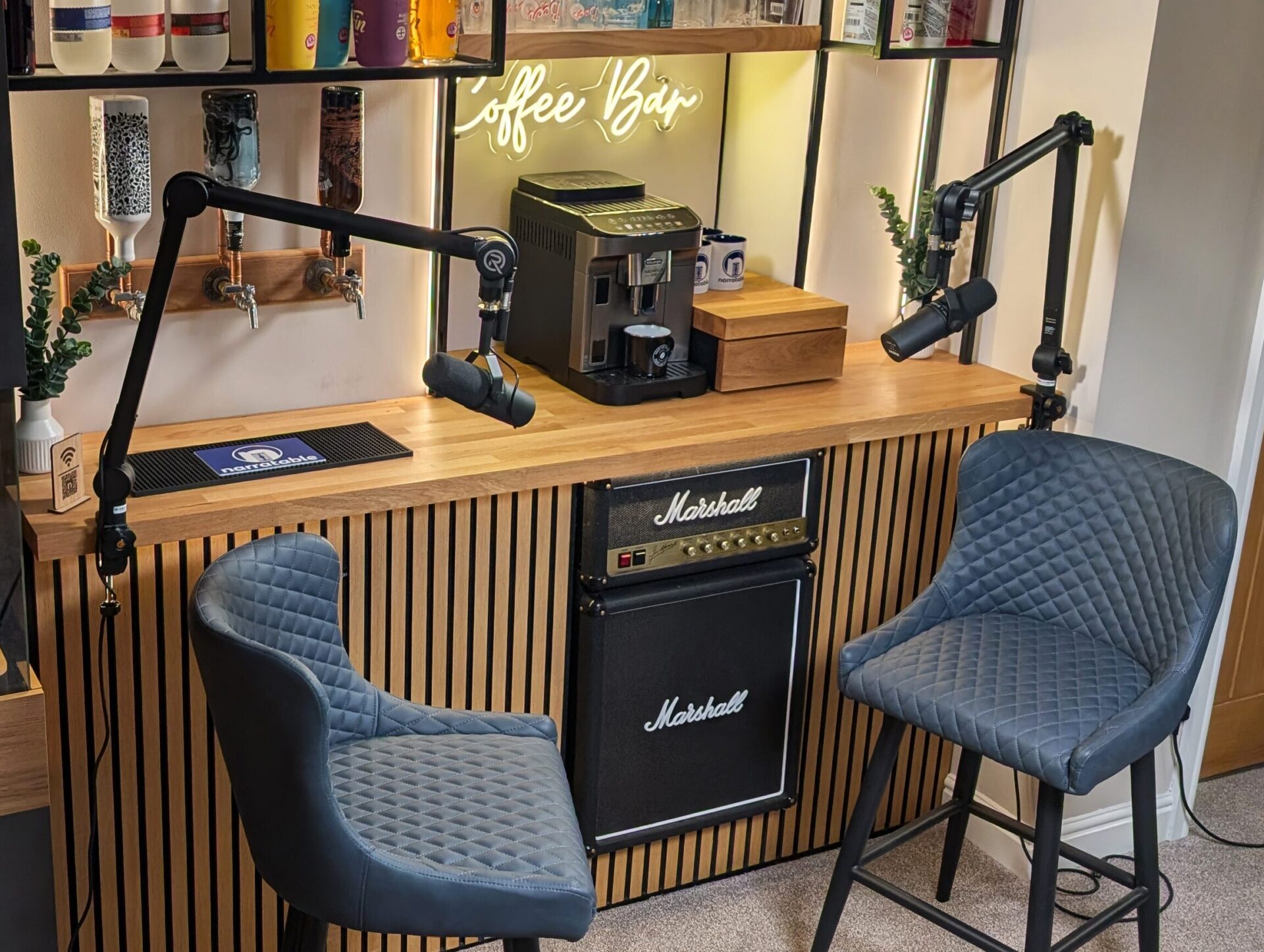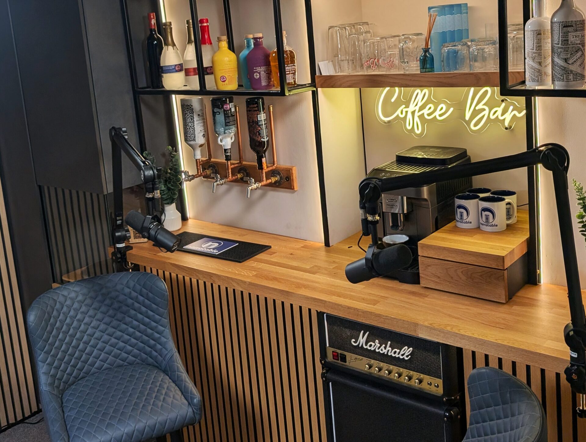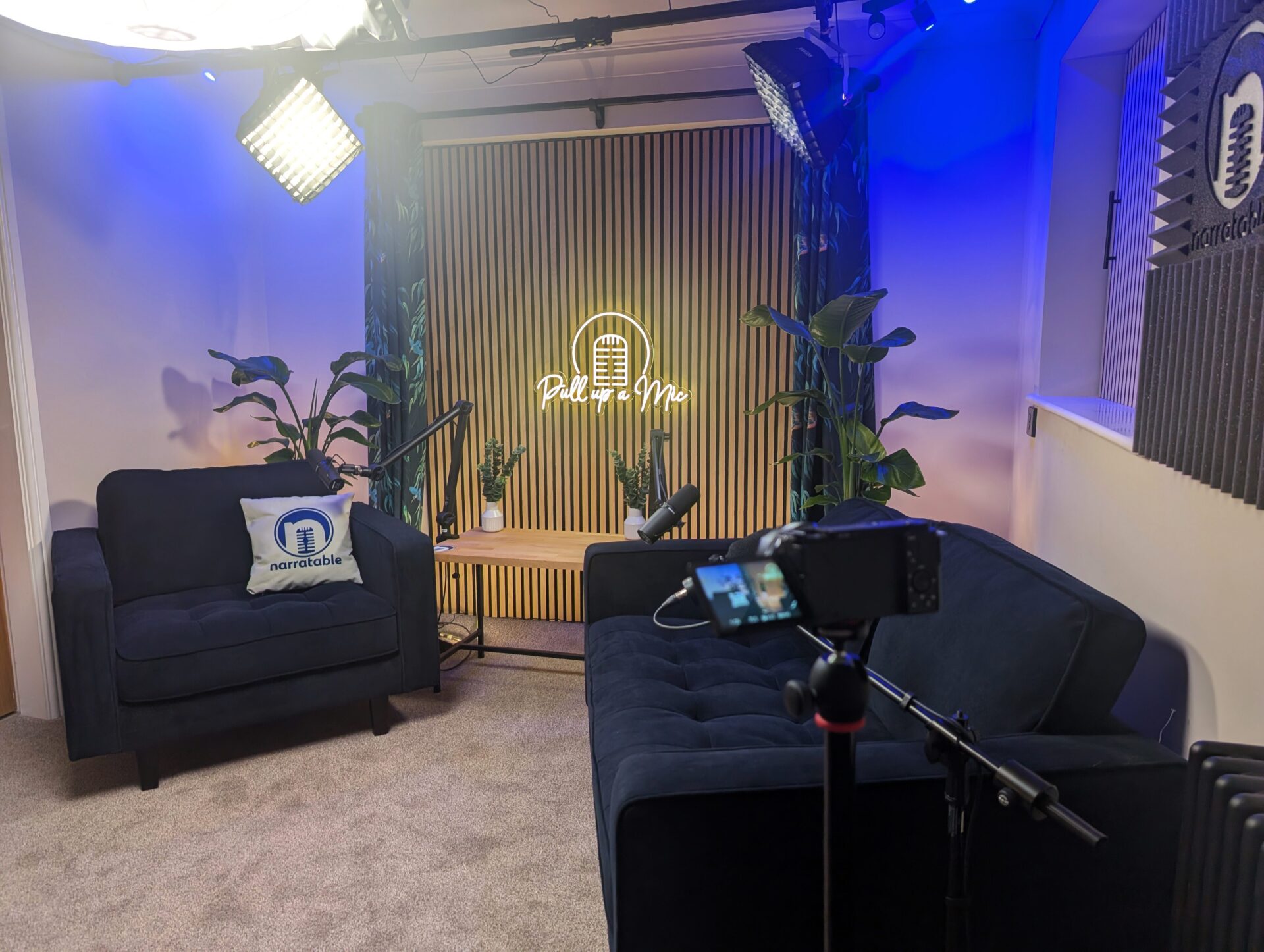 We have numerous environments here on offer, ranging from a completely acoustically treated Voice Booth for the best quality pure audio recordings, to sitting around the bar chatting with a complimentary drink!