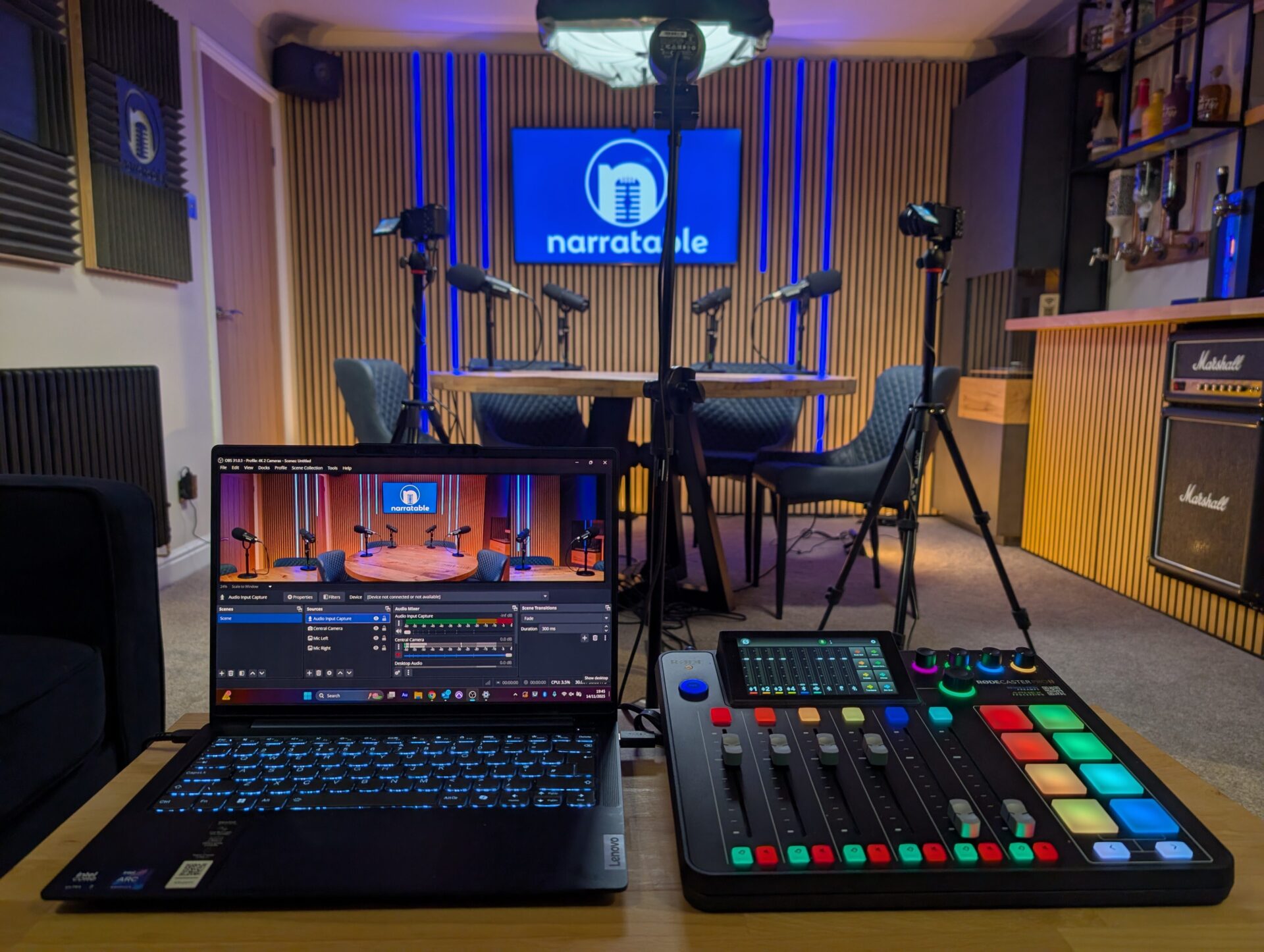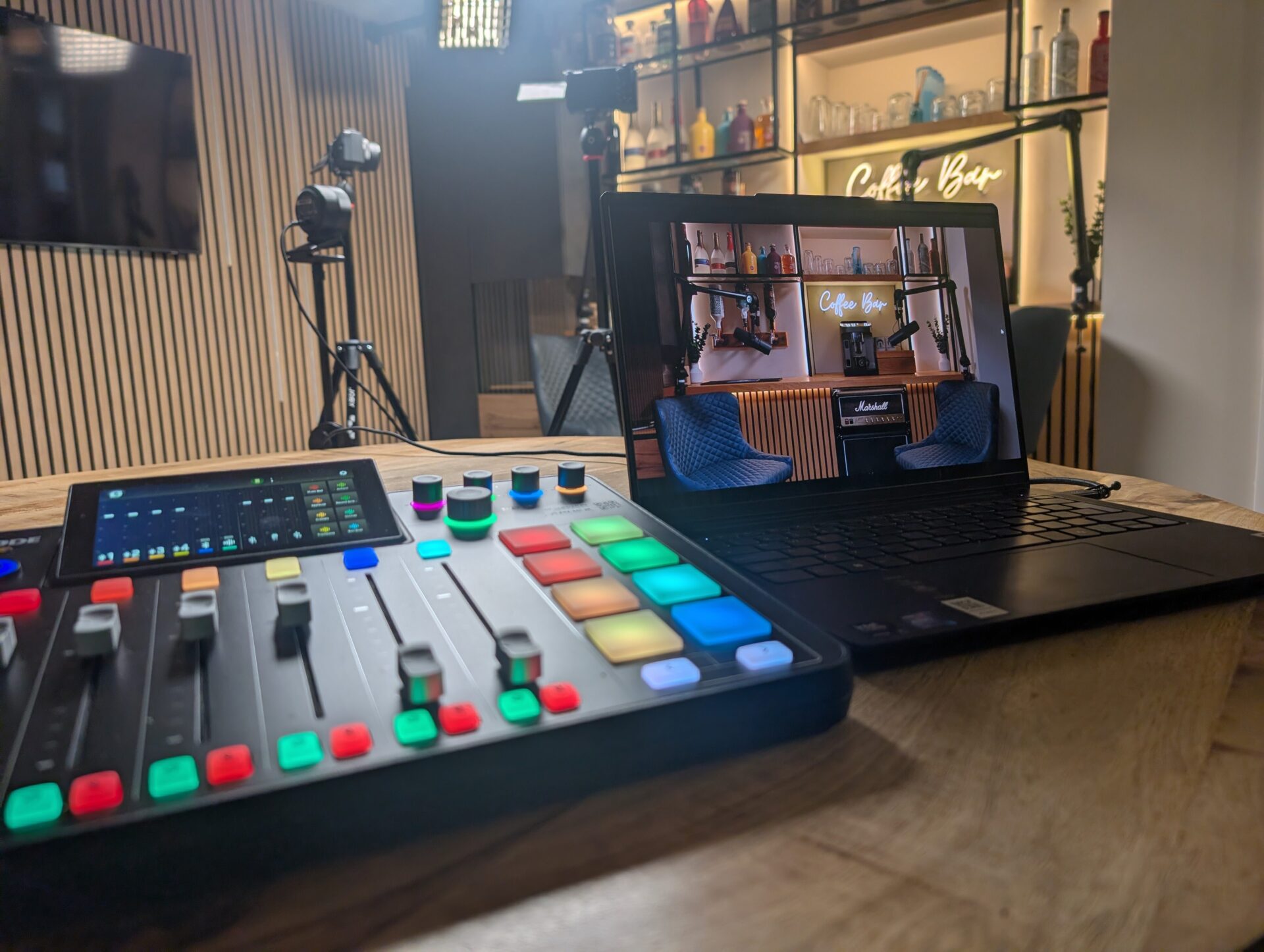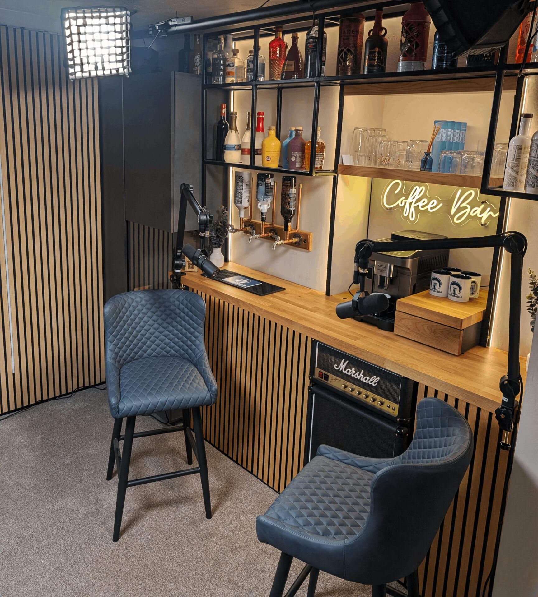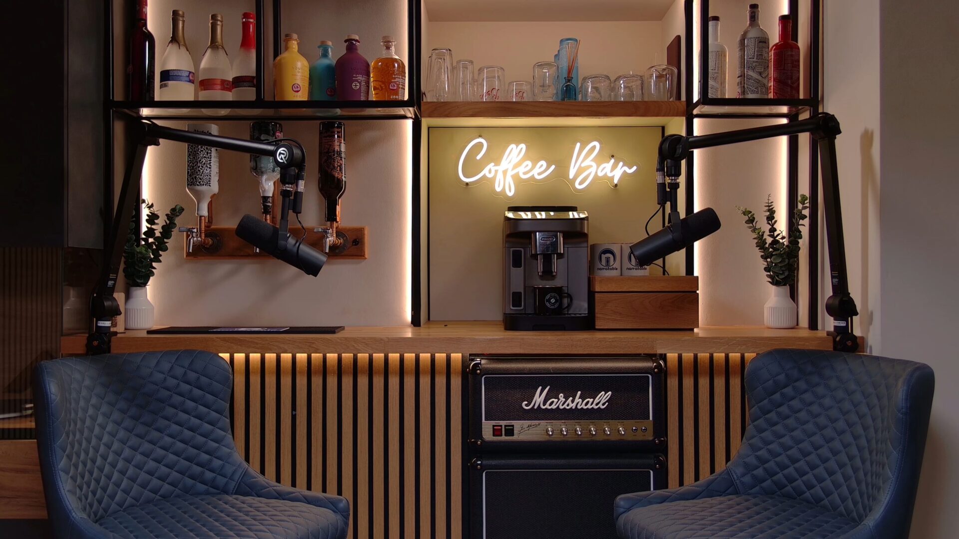 We have numerous environments here on offer, ranging from a completely acoustically treated Voice Booth for the best quality pure audio recordings, to sitting around the bar chatting with a complimentary drink!
